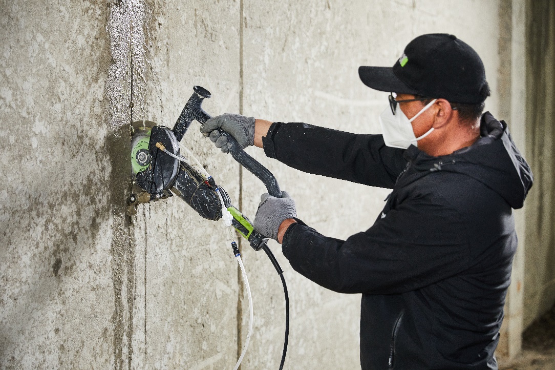 水電安裝工程,在墻體中切割槽道,用于布設電線、水管等。